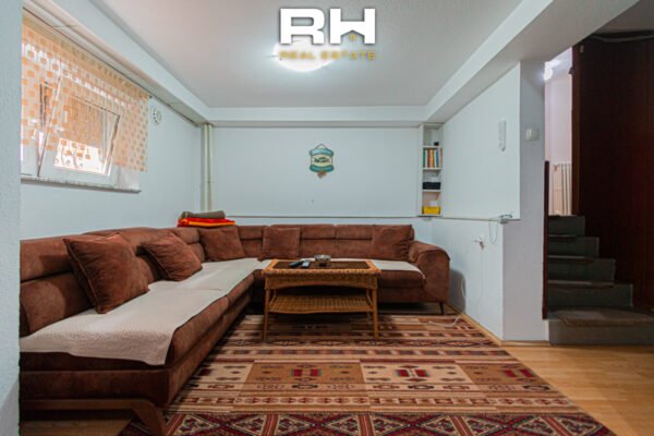 – Niveli i 1-rë (përdhesa): Qëndrim ditor | Kuzhinë me tryezari | 1 Depo | 1 Tualet | 1 Terasë të madhe | Oborri prej 1.5 ari.