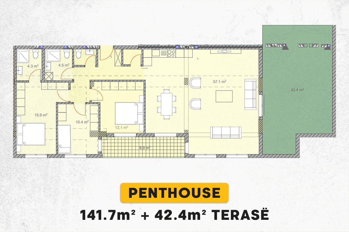 Penthouse 141.7m² + 42.4m² në #SHITJE në Emshir